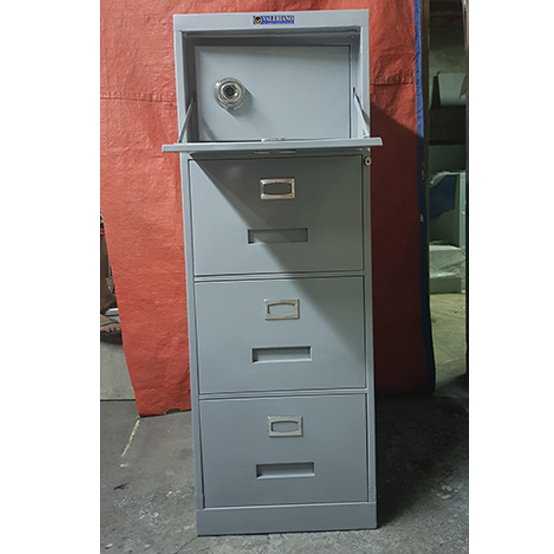 - Safe on top and filing drawers below.